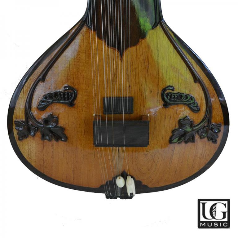 This week for #ImplementsOfSound, we are basking in the glory of this absolutely gorgeous concert grade flat Sitar from our collection. Available in the reverse finish, (light background + dark wood work) as opposed to the regular Gandhar Pancham models (dark background + light wood work).