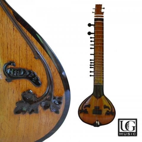 This week for #ImplementsOfSound, we are basking in the glory of this absolutely gorgeous concert grade flat Sitar from our collection. Available in the reverse finish, (light background + dark wood work) as opposed to the regular Gandhar Pancham models (dark background + light wood work). Carved out of robust red cedar wood, ornately designed teak wood work, ebony bridges and guitar tuning pegs make the tuning process a breeze !