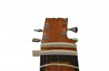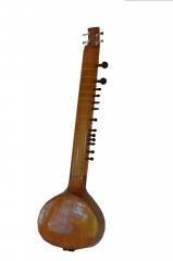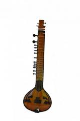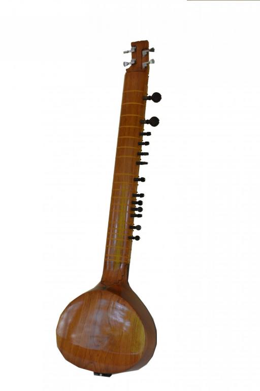 The Travel Sitar has an advantage over the traditional Sitar. The Travel Sitar has a flat sound box or toomba. The benefits of the flat gourd or lack thereof, are that the Sitar is much easier to carry and occupies lesser space in storage. The Sitar is ideal for a travelling musician. One of the major complaints in the flat Sitar is that due to the flat nature of the sound box, it is difficult to maneuver while playing. This has been specially taken care of. During manufacturing, the design is specifically tested to ensure that the right arm rest is comfortable. The height of the Sitar has also been reduced which helps in the portability of the instrument. The Sitar is made from Red Cedar wood. Although different in design, this Sitar belongs to the Vilayat Khan School of music. Sitars can be made in many types and the craftsmanship for each one differs from the other. Sitars with impeccable tuning are a quality norm at Ultimate Guru. Special care is taken that there aren’t any cracks in the wood and no joints in the neck or in the sound box. The Sitar is a Gandhar Pancham style sitar which has 6 main strings and 11 sympathetic strings. This can be customized to a Kharaj Pancham style as well. The main strings on the Sitar are connected to Guitar tuning pegs which makes tuning a hassle free process. It is 47 inches tall and weighs about 3.5 kgs. The facades have handmade wooden patterns on the borders. The neck-toomba joint has wooden detailing on the front as well. The Sitar is a light brown color which has no color tint in the varnish. The light brown surface of the Sitar and the dark brown detailing draws contrast. This is one of the few Gandhar Pancham models which is produced with a reverse effect, a lighter body with darker detailing. The metal string-set is made from the best quality steel, copper and bronze.