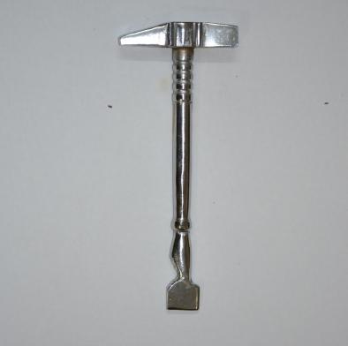 The hammer has a flat head which can be used to push down the gattas and a pointed end with helps to pull up the gattas or to hold the vadi or gajras when tuning is underway.
